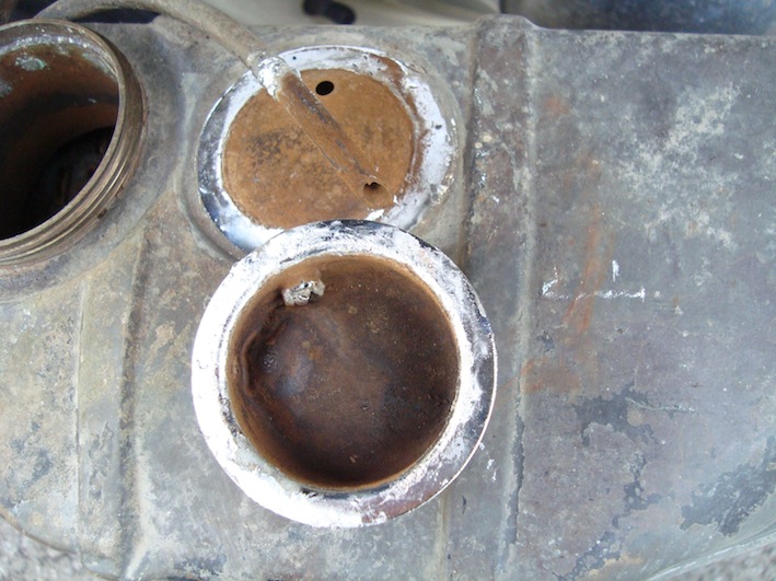 Hier auf dem Bild ist der Dom für das interne Überdruckventil nebst Ablaufleitung zu sehen.