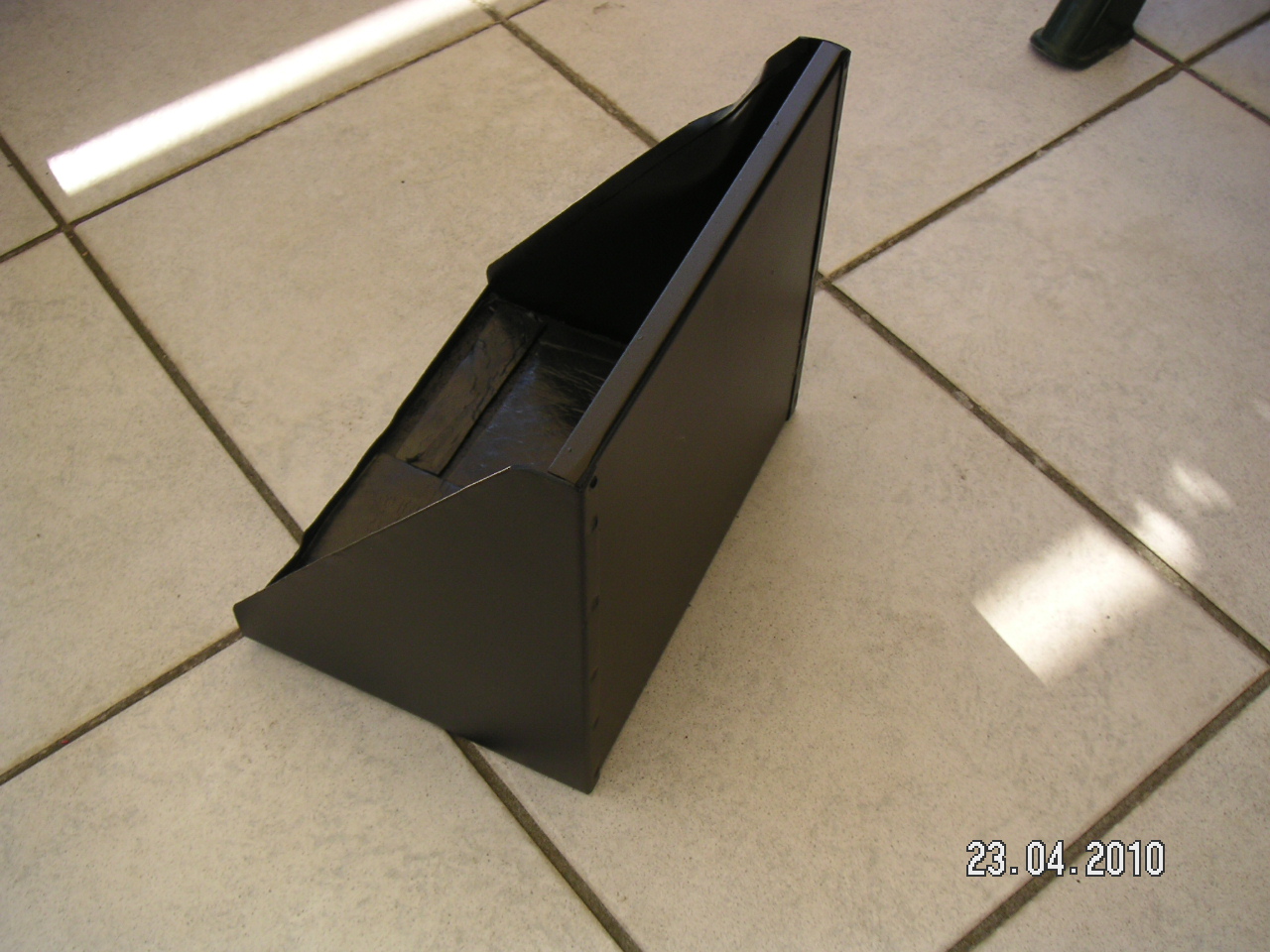 Dummerweise war die Tiefe des Kastens aber 3 mm zu kurz geraten und der blöde Spalt wurde dann einfach mit Kautschuk zugekleistert und danach Bodyschutz drübergestrichen.