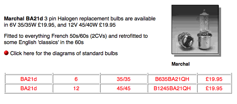 Bei 6-Volt-Anlagen darf man die Watt-Leistung nicht übertreiben, wegen des Kabelquerschnitts. Die 35/35-Birnen von Norbsa wären da eine ausgezeichnete Lösung.