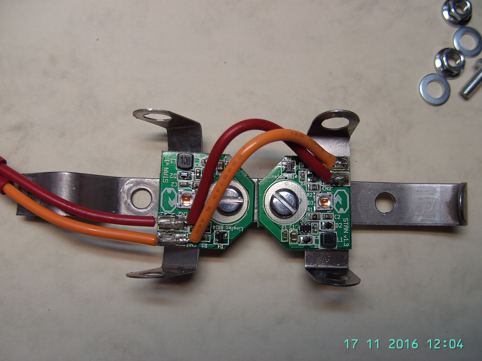 ich möchte Euch mal ein Foto der LED Rück- und Bremsleuchte unseres Anbieters zeigen. Die holländische Anleitung habe ich versucht zu verstehen. Es sind 2 Löcher für die Befestigung zu bohren. Nicht einfach, aber geht. Dann soll man die Ringeltches unterlegen, damit die Platine nicht kaputt geht. Hab ich wohl richtig verstanden und versucht mal zu fotografieren. Es bedeuted, dass die Platine auf der Unterlagscheibe aufliegen soll und nicht mit dem Träger verkanten. Die Scheiben, Schrauben, Klemmverbinder werden mitgeliefert. Nur muß ich die Schrauben und Muttern umgekehrt montieren - also nach oben - da sie so auf de Kotflügel aufliegen würden. Der Abstand von Halterung zum Kotflügel ist zu gering und läuft auch noch keilförmig zu. Man soll das Lampengehäuse wegen der Empfindlichkeit der LED auch wasserdicht machen. Vielleicht hat jemand von Euch einen Tipp ? Karrosseriekleber ?