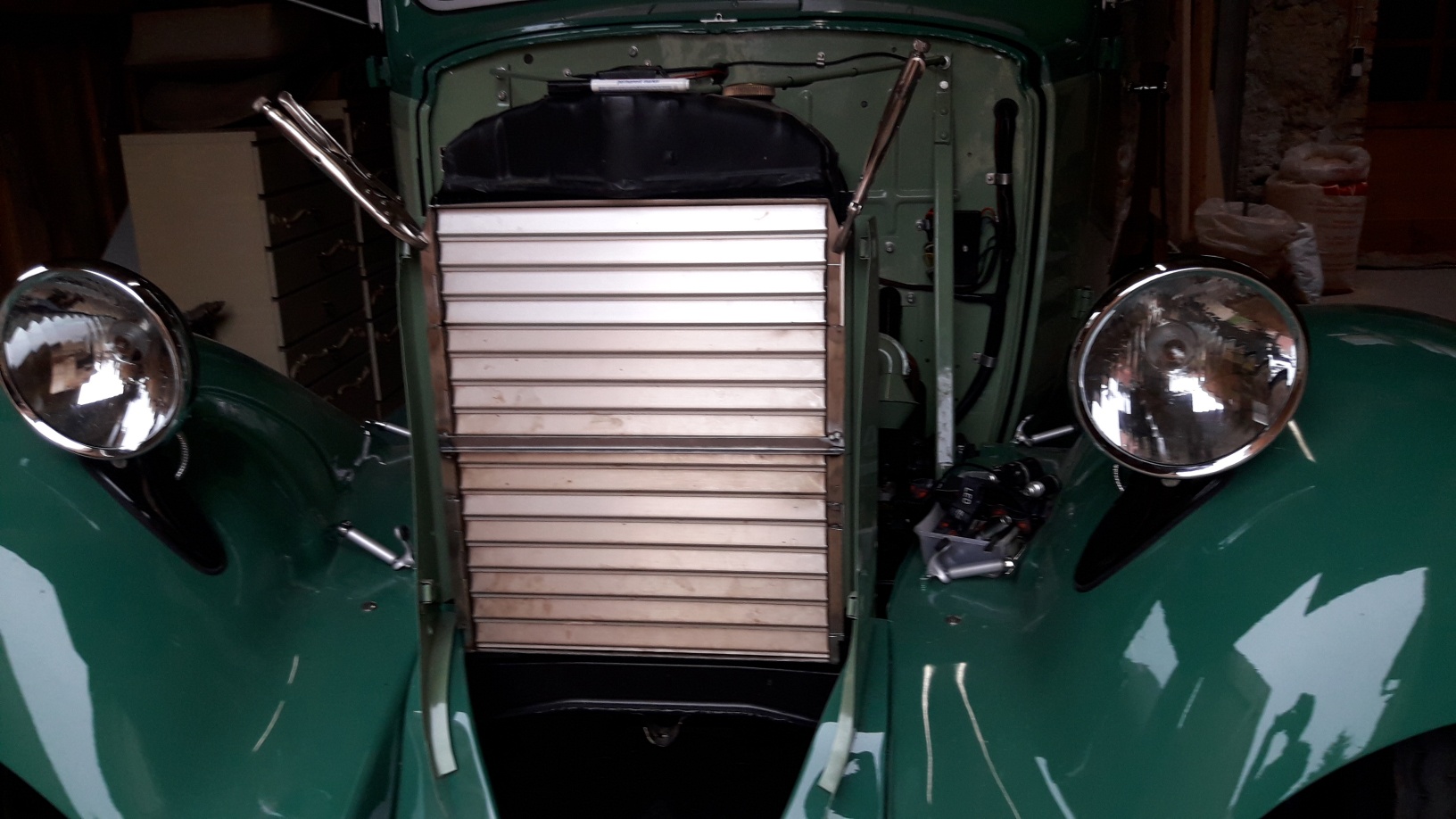 Hallo Kurt, genau so muß es aussehen, dazu noch eine Kühlerzarge nach Bauart eines Clubmitglieds, vorgestellt vor einigen Jahren in der CVC Zeitschrift. Da wird die Jalousie überflüssig, hab sie mal vergessen. Hätte mich fast die Kopfdichtung gekostet. Winkelige Grüsse, Guenther.