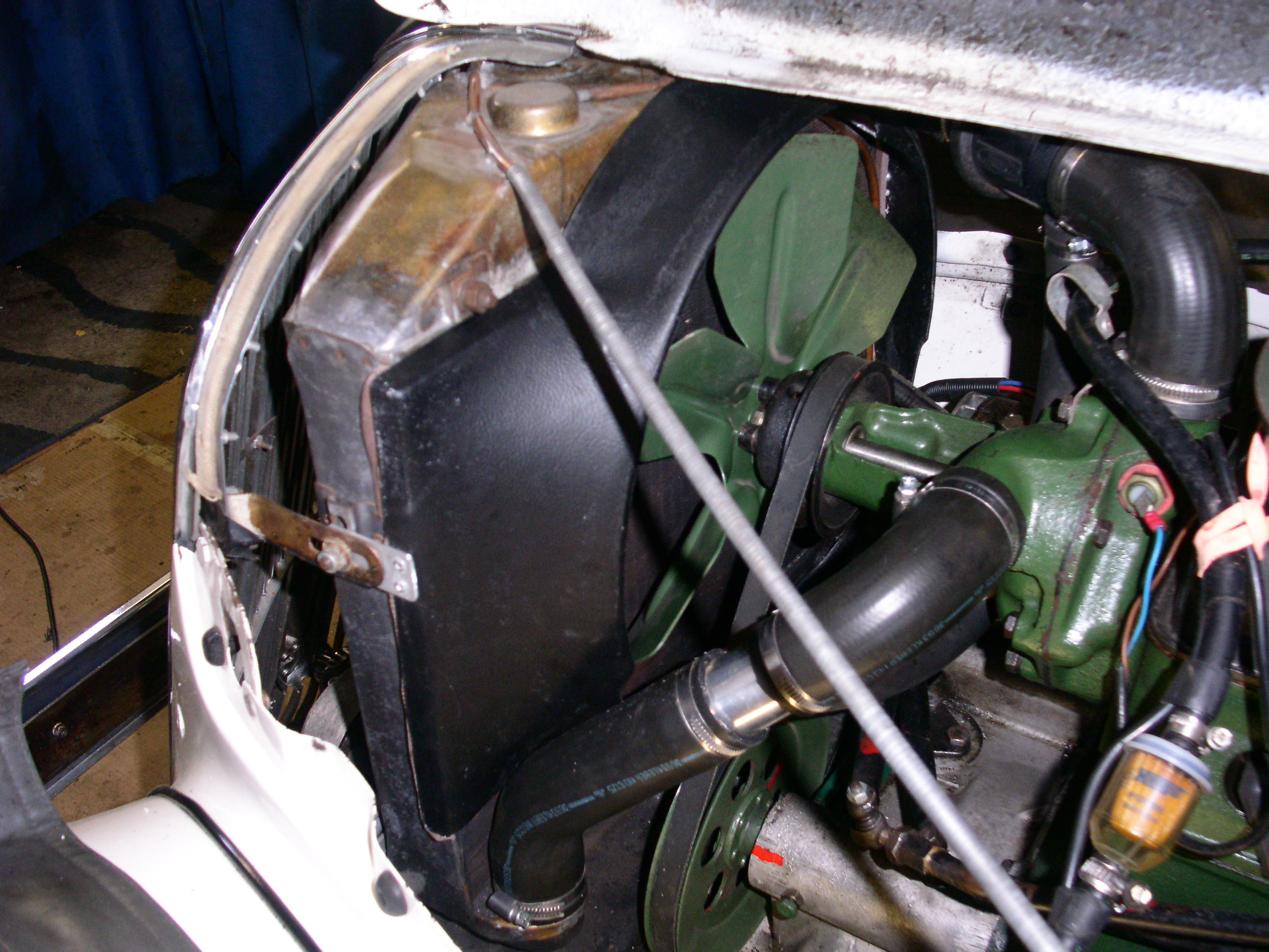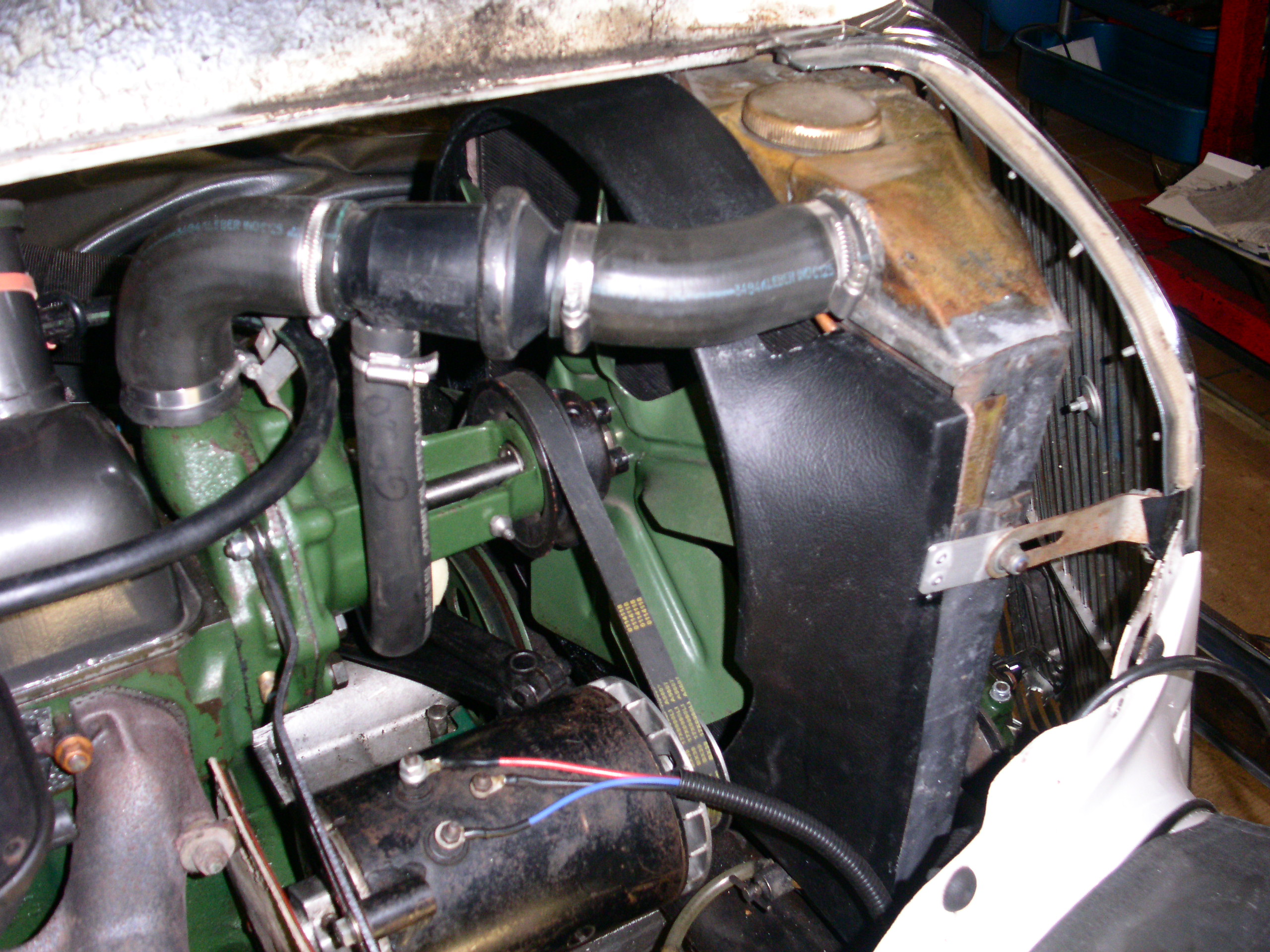 Hallo Robert, Hitzeprobleme habe ich im Sommer nicht mehr, da ich eine Kühlerzarge verbaut habe. Jetzt geht im Stand die ganze Kühlluft von vorn durch den Kühler und zwar auf seiner gesamten Fläche. Es wird also keine warme Luft mehr aus dem Motorraum vom Propeller mit angesaugt. Sollte es beim Fahren zu kühl werden, hab ich immer noch mein Rollo. T-Stücke bekommst Du z.B. bei schlauchland.de oder complete-radiator-supplies guenstig. Gruss Guenther.