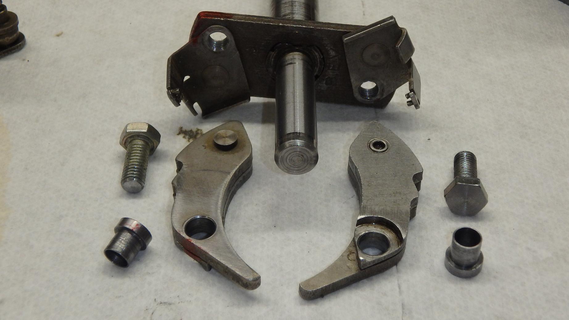 Die alten, eingenieteten Achszapfen waren verschlissen und sind jetzt durch 2 Buchsen ersetzt und mit Schauben M5 befestigt. Zur Sicherheit noch ein Tropfen Loctite hochfest auf die Gewinde.