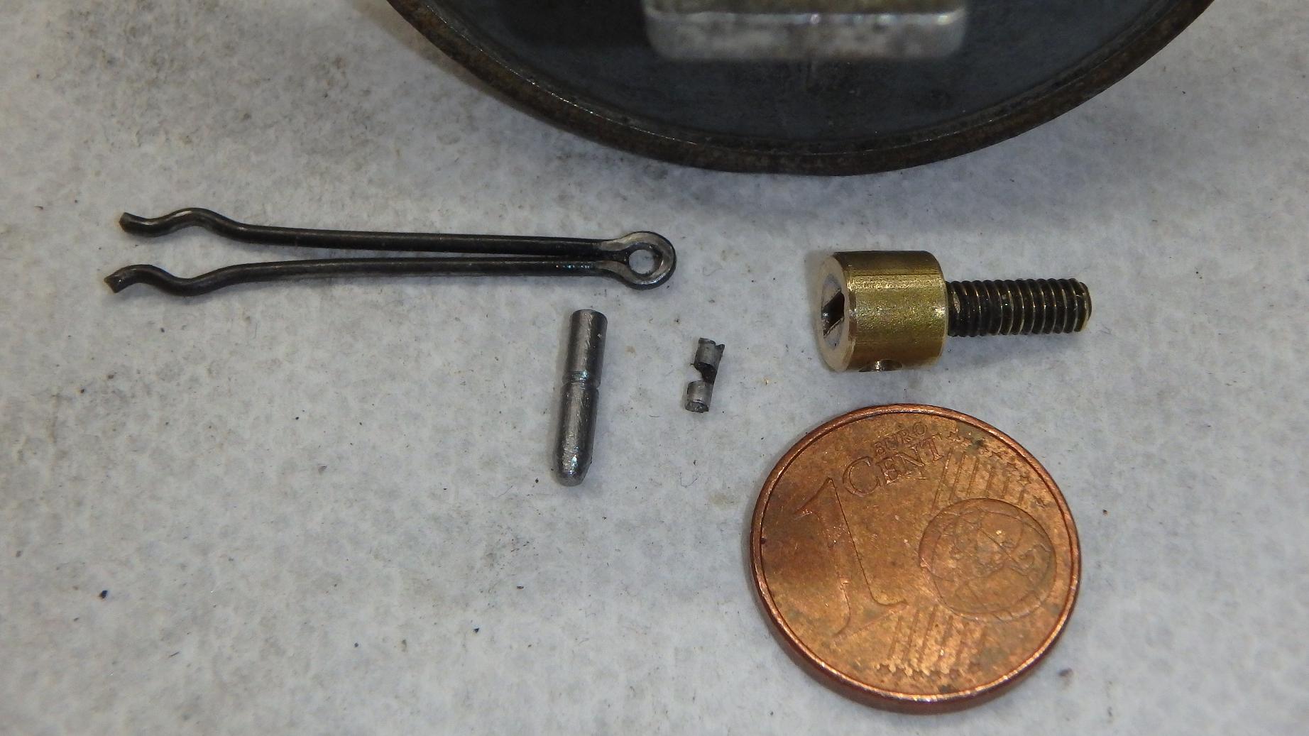 So, Problem Nr.1: Die Kuppelstange neu anlenken. Auf dem Foto seht Ihr so einen ganz winzigen Bolzen, schon zu 90% durchgeschubbert. An dem Winzling hängt der ganze Laden: Wenn der fertig ist, tanzt die Unterbrechergrundplatte Charleston.