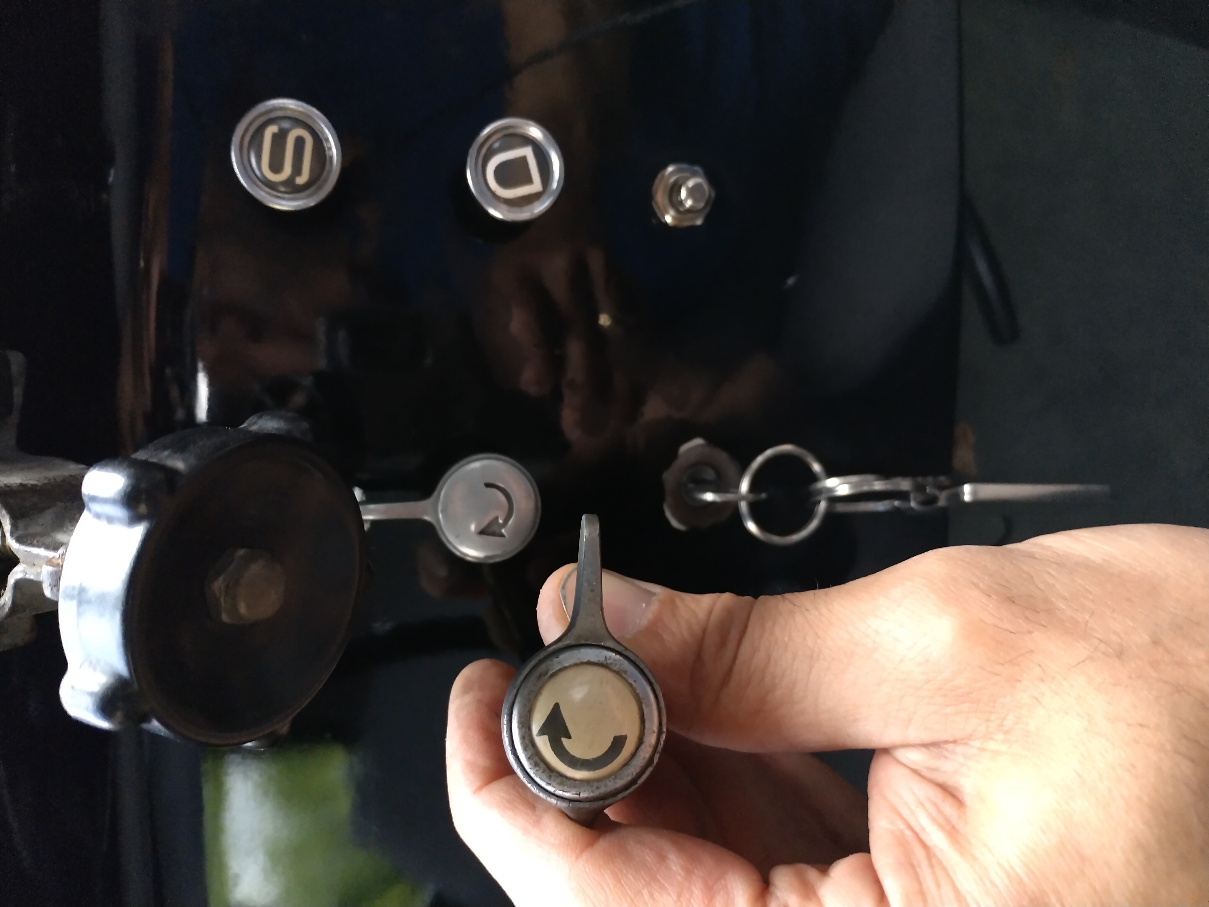 Weiß jemand welche Bedienungsknöpfe wann verbaut wurden? Ich habe zwei Ausführungen von Zündversteller, siehe Anhang. Die eine hat eine Knopf vollständig aus Aluminium, die andere eine eingepresste Plakette. Der hintere Aufbau unterscheidet sich auch. Die Alu-Variante ist hinten zwei-achsig und passt nicht durch das Bohrloch. Man muss einen Sprengring vom Bedienhebel hinten lösen um das ganze auszubauen.