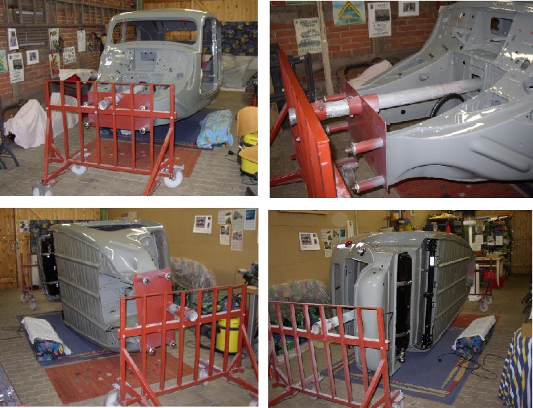Verkaufe an Selbstabholer das Drehgestell von meiner Fahrzeugrestaurierung. Standort Norddeutschland. Paßt für 11 BN (Baujahr 1955). Die Karosserie wird mit einem 4.50 Meter langem Rohr axial an zwei fahrbaren Böcken aufgehängt und kann um die eigene Achse stufenlos gedreht werden.  Foto anbei.