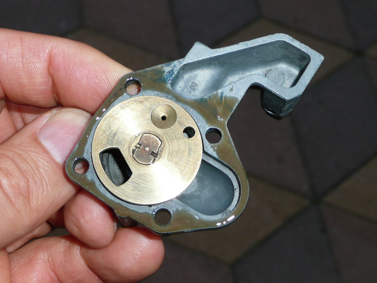 Bei meinem Solex sickert das Benzin dort aber immer etwas hinaus, daher habe ich den Rand mit etwas benzinresister Dichtmasse versehen.