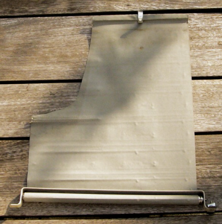 so sieht das Rollo aus. Mit Ausschnitt für die Heizung. Angeblich ein Originalteil aus den 50er Jahren.