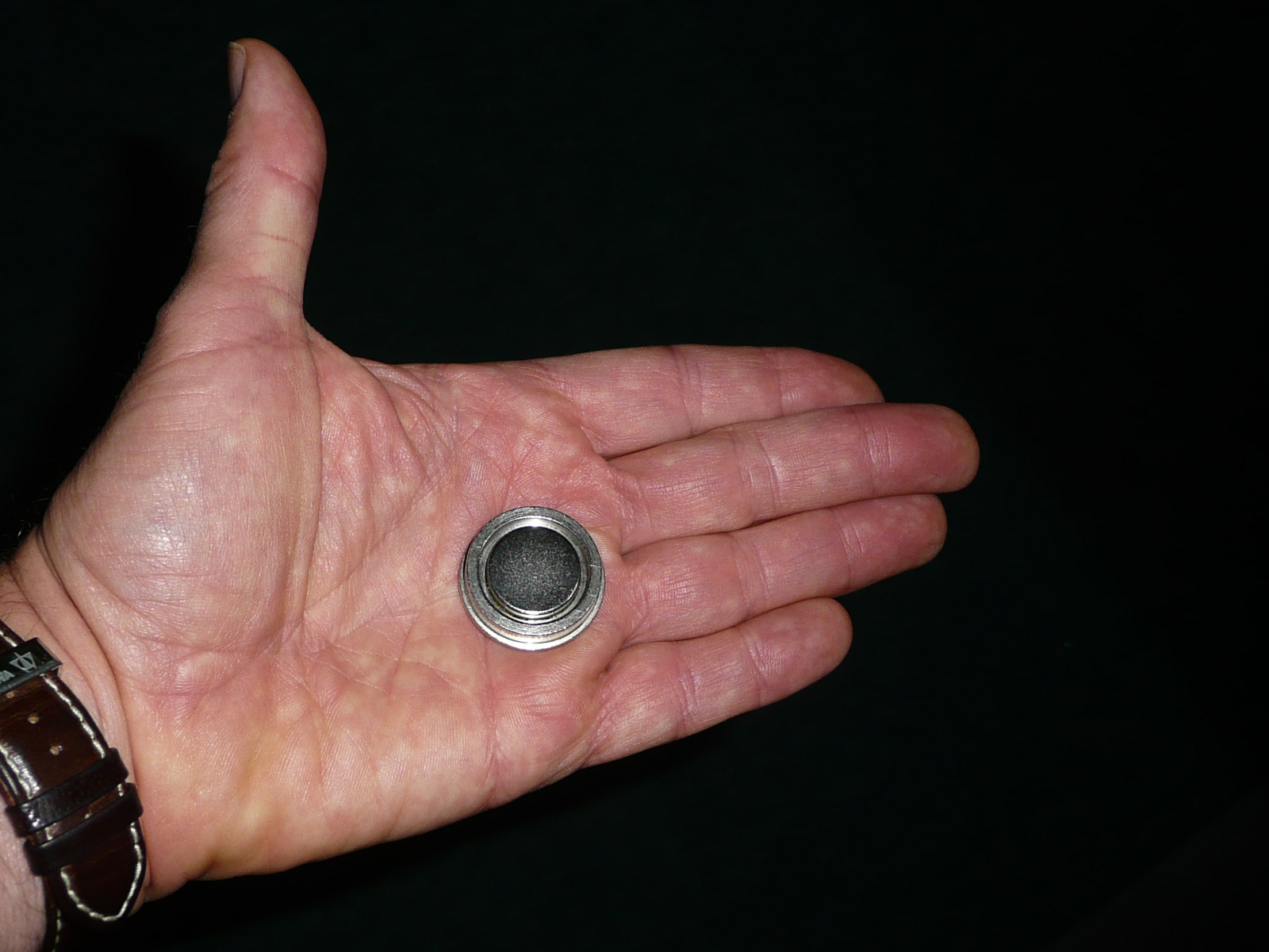 ... allerdings nutze ich nicht eine Ablassschraube mit integriertem Magneten, sondern "extern" von außen aufgesetzt einen extrem starken Neodym-Magnet mit einer Zugkraft von 13 kg. Dessen Permanenthaftung ist tatsächlich so hoch, dass sich der Magnet nicht mit der bloßen Hand abziehen lässt! (Diebstahlsicher.) Dadurch ist gewährleistet, dass auch bei starker Ölturbulenz keine anhaftenden Partikel abgespült werden können.