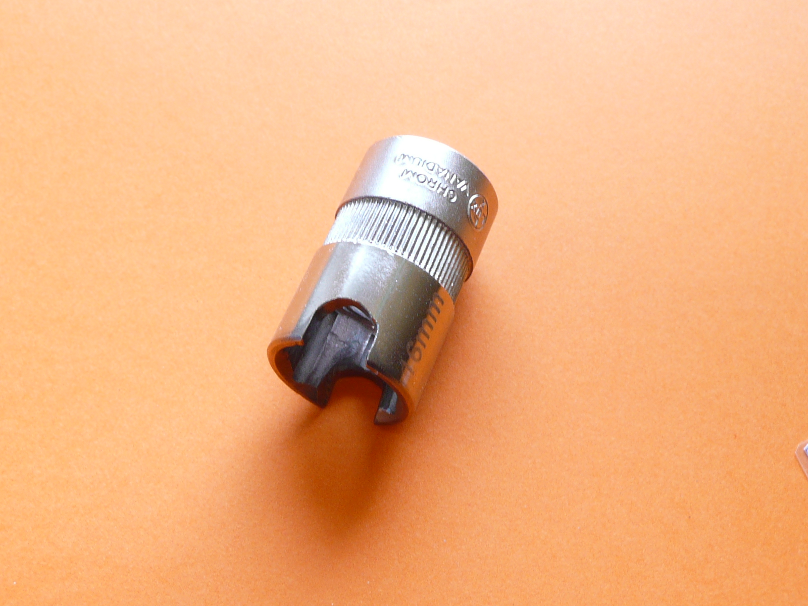 Zur schnelleren Lösung habe ich in eine 16 mm Nuß quer eine 8 mm breit Nut geschliffen.