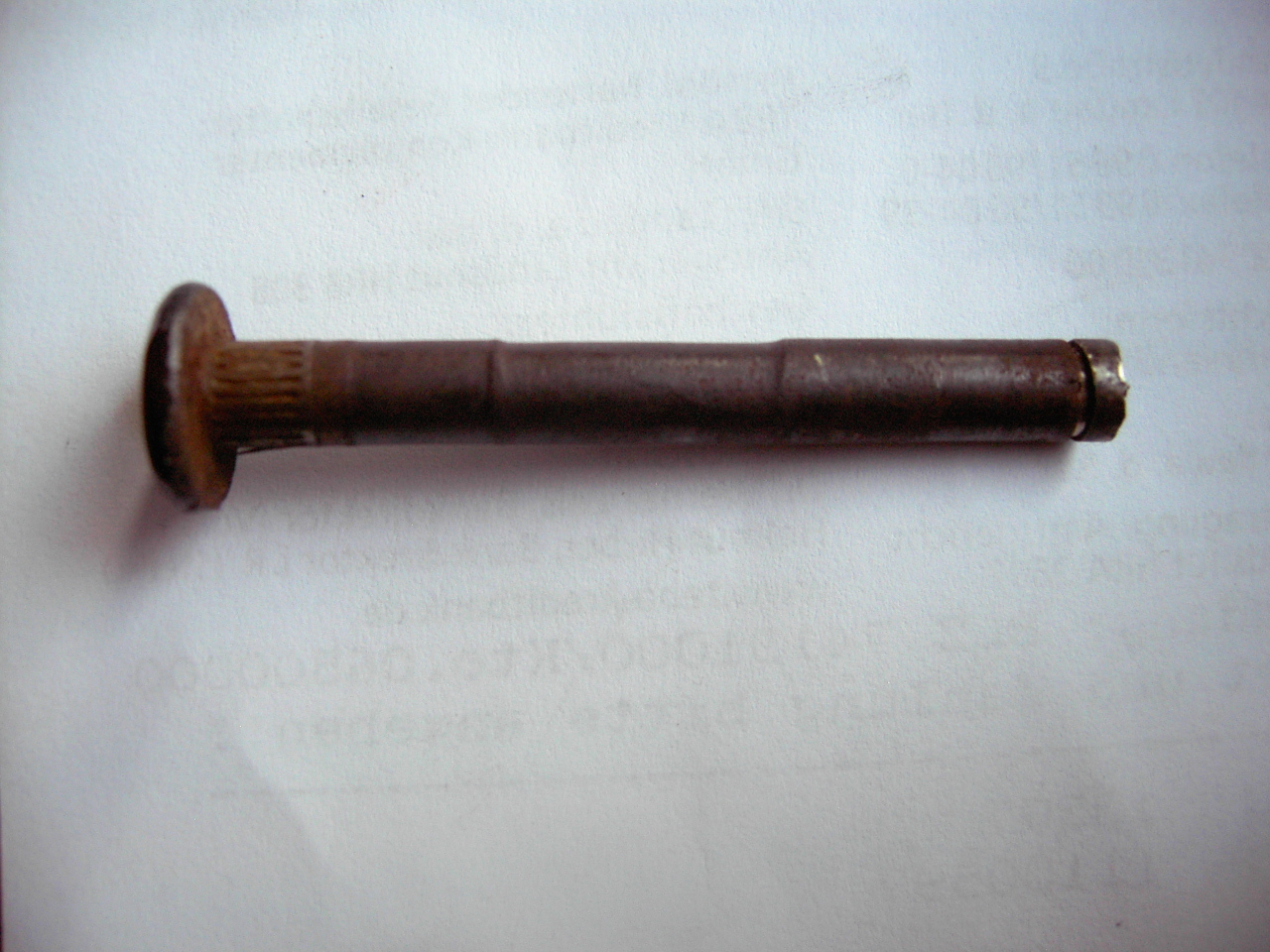 Weiterhin haben die Scharnierstifte eine Abnutzung dergestalt, dass sie jetzt eine Stufenbildung aufweisen (auch auf dem Foto gut zu erkennen). Zum Entfernen der Stifte brauchst Du zwei Helfer, die die Türen unten anheben. Dann kannst Du mit einem Dorn die Stifte ausschlagen. Damit der Lack an der B-Säule nicht beschädigt wird, Plastikscheibe von unten an die B-Säule halten, jeweils in dem Bereich, wo geschlagen wird.