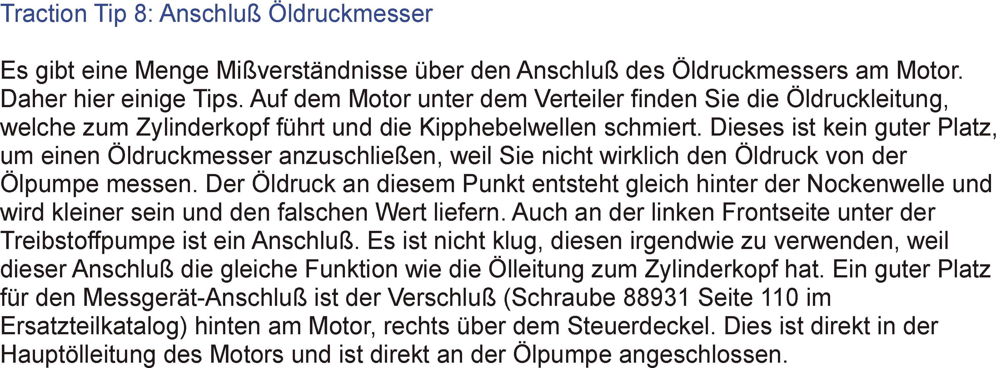 Zum Thema "Öldruck" auch von mir eine Ergänzung: