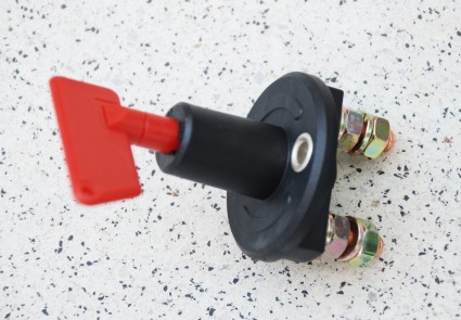 Der Schalter trennt nach der Batterie (Plus) zunächst alles ab.