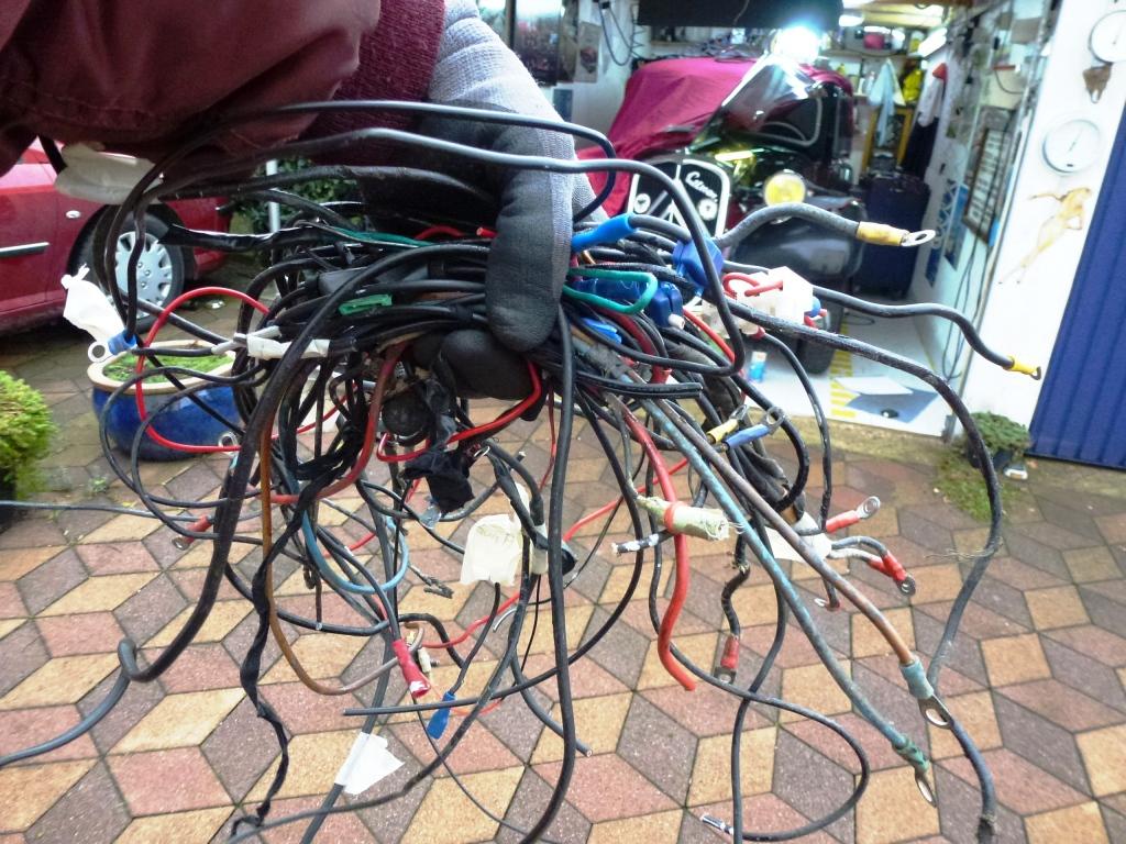 n´abend Werner, wenn Du den Kabelbaum schon erneuerst, lege ein Paar mehr Massekabel (Beleuchtung, Blinker, etc.) mit hinein. Seit dieser Erneuerung erfreue ich mich trotz Gleichstromlichtmaschine einer ordentlichen Beleuchtung. Den alten Kabelbaum habe ich auf lange Bretter genagelt und die neuen Kabel exact mit dieser Länge nachgearbeitet. Jeder Anschluß bekam ein Pappschildchen mit der jeweiligen Position / Aufgabe. Dann habe ich den gesamten Kabelbaum mit Stoffisolierband umwickelt. Ich habe ausschließlich 2,5 mm dickes Kabel verwendet. Von dem original unterscheidet sich alles nur durch ein neueres Aussehen. Alles in Allem habe ich diese Fleißaufgabe gerne erledigt. Grüße aus dem verschneiten Hamburg.