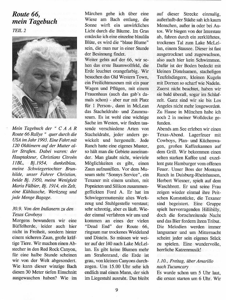 Ich suche einen Bericht, ( CAAR Route 66 Rallye )- " Route 66, mein Tagebuch ", im Veteran 4/97 und 2/98, geschrieben von Maria Fülbier. Kopie würde reichen.