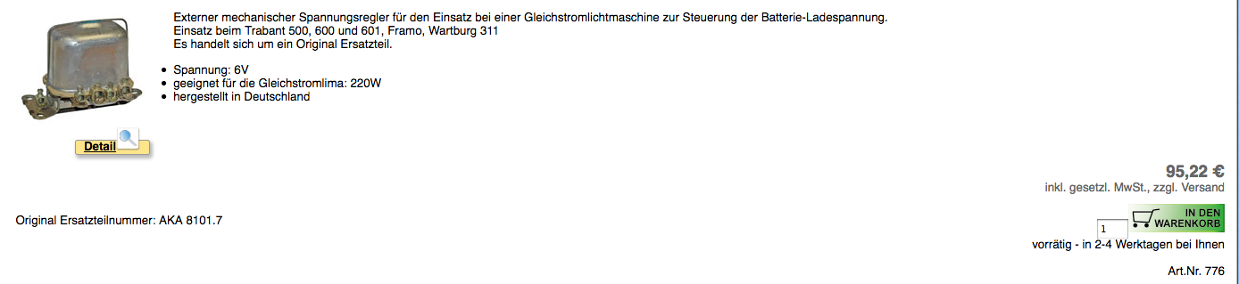 Bin ebenfalls auf der Suche, nach einer passenden 6V Drehstromlichtmaschine.