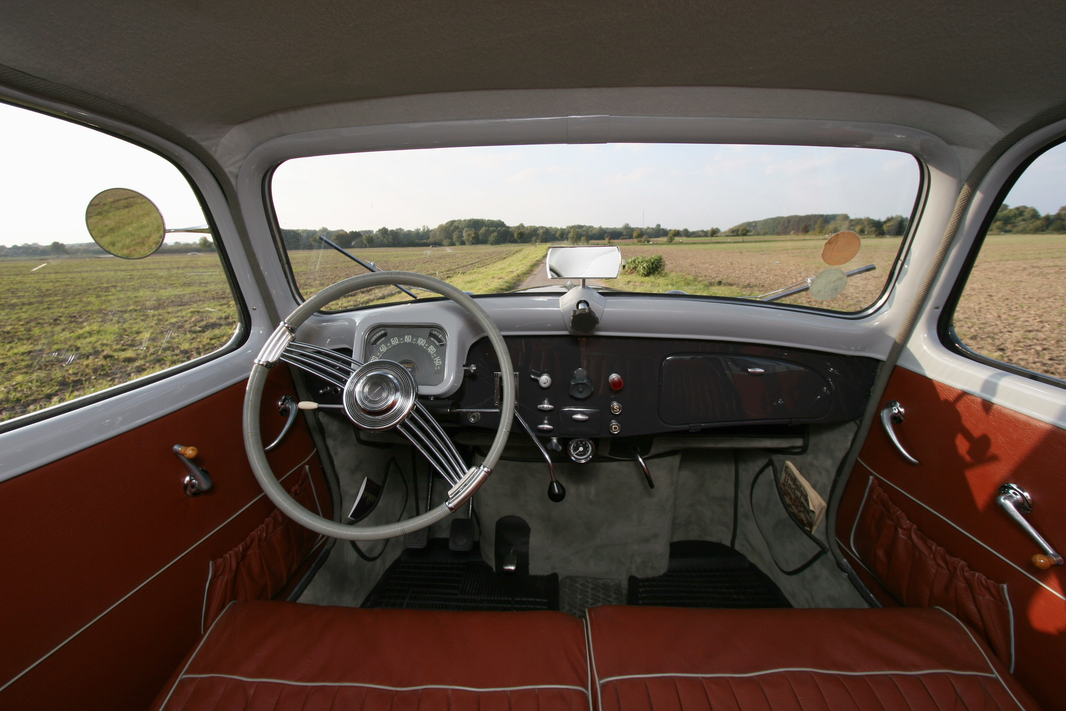 Die Bezüge waren vom Erstbesitzer meiner Traction (Bj. 1954) schon eingebaut worden und sind so geschnitten, dass sie noch zusätzlich über die originalen, grauen Stoffbezüge gezogen werden.
