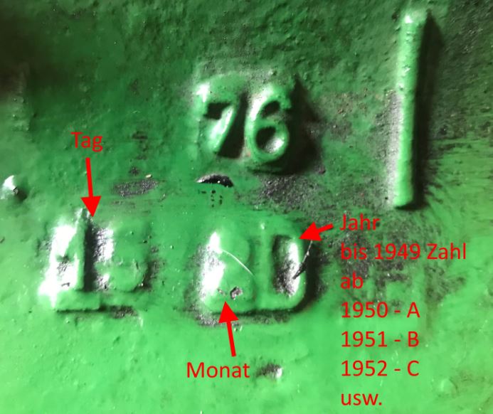 ja super, selbst ein alter Greis wie ich kann noch was lernen. Das mit den Jahrgangsbuchstaben kannte ich trotz jahrzehntelanger Beschäftigung mit Tractions nicht. Nun liegt allerdings mein Schwerpunkt auf Vorkrieg (und da ist es mit dem Gußdatum ja direkt ablesbar).