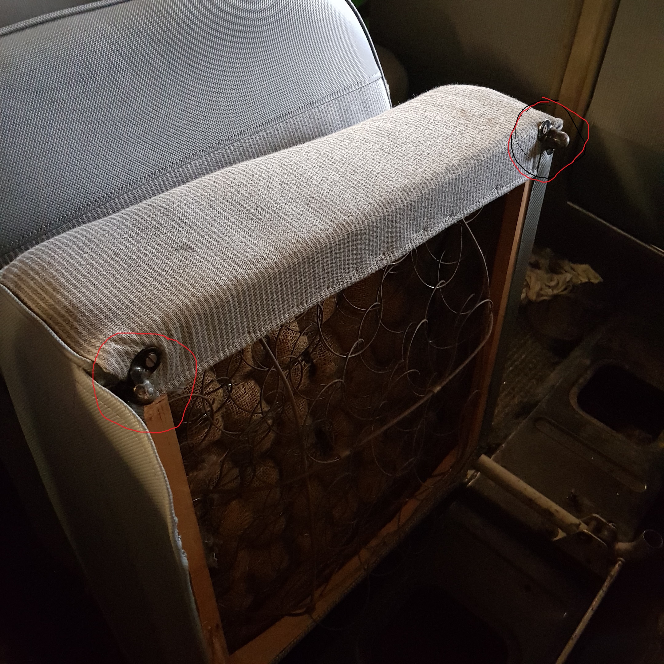 Mir sind leider zwei der Halterungen, die unter den Vordersitzen mit zwei Schlitzschrauben eingesetzt werden und in das darunter liegenden Rohr der Sitzhalterung greifen abhanden gekommen (s. Bild).