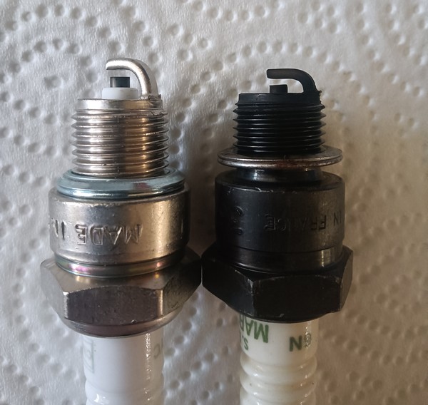 Otto schrieb:Hatte ich noch vergessen, die bestellten Zündkerzen Champion L87YC sind angekommen. Kein Innenwiderstand, wie erwartet. Im Vergleich zu meinen alten Zündkerzen und auch den Iridium-Kerzen stehen die Elektrode und natürlich auch der Metallbügel weiter aus dem Gewindebereich heraus...